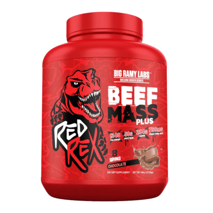 RED REX Beef Mass Plus – gainer riche en isolat de protéine de bœuf, glucides et créatine, 1340 kcal pour prise de masse et croissance musculaire.